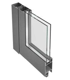 Ramen en buitenvitrines gemaakt van zeer slanke en thermisch geïsoleerde stalen profielen.
