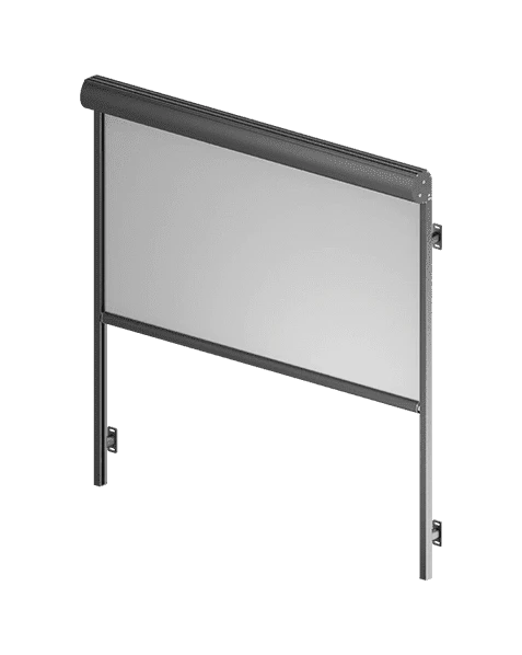 Gladde polyester, afgewerkt met pvc. De weefstructuur zorgt voor effectieve blokkade van zonlicht maar tegelijkertijd optimale doorlating van zichtbaar licht, zodat de bewoners kunnen genieten van optimaal gebruikscomfort.